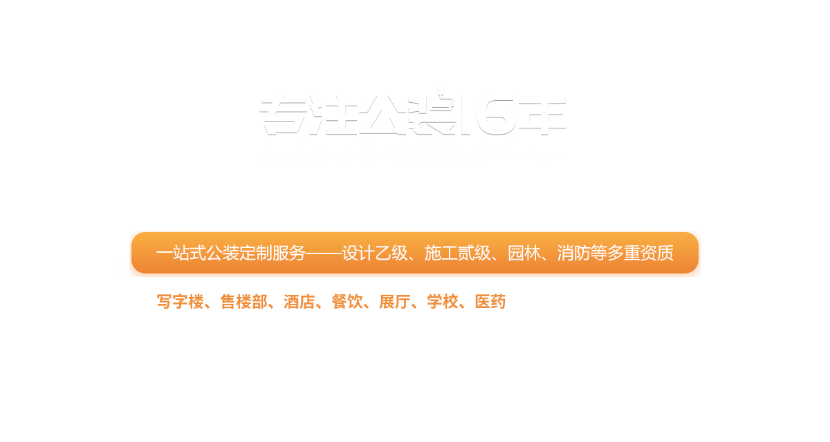 16年專注公裝,設(shè)計(jì)施工雙重資質(zhì),實(shí)力保障